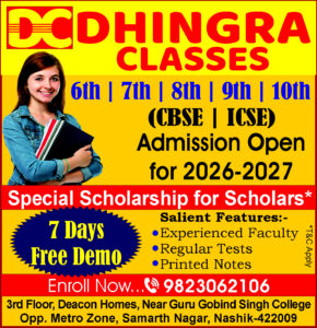 नाशिक शहरातील विद्यार्थ्यांसाठी गुणवत्तापूर्ण शिक्षण, शिस्तबद्ध मार्गदर्शन आणि सातत्यपूर्ण प्रगती यांचा उत्तम संगम म्हणून धिंगरा क्लासेस हे नाव विश्वासाने घेतले जात आहे. इयत्ता ६ वी ते १० वी (CBSE | ICSE) पर्यंतच्या विद्यार्थ्यांसाठी विशेष शैक्षणिक मार्गदर्शन देणाऱ्या या संस्थेने गेल्या काही वर्षांत उत्कृष्ट निकाल आणि मजबूत शैक्षणिक पायाभरणी यामुळे वेगळी ओळख निर्माण केली आहे.